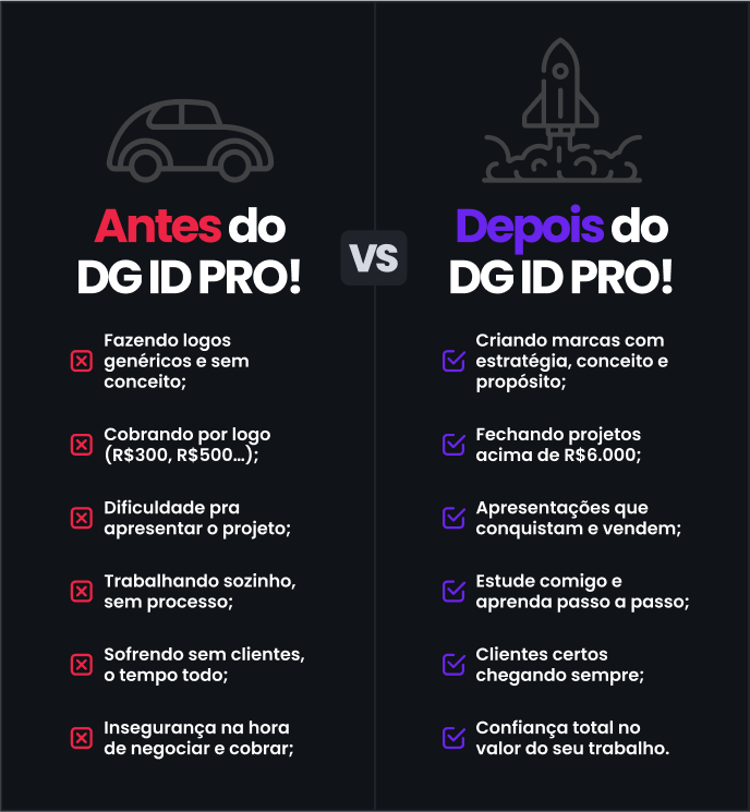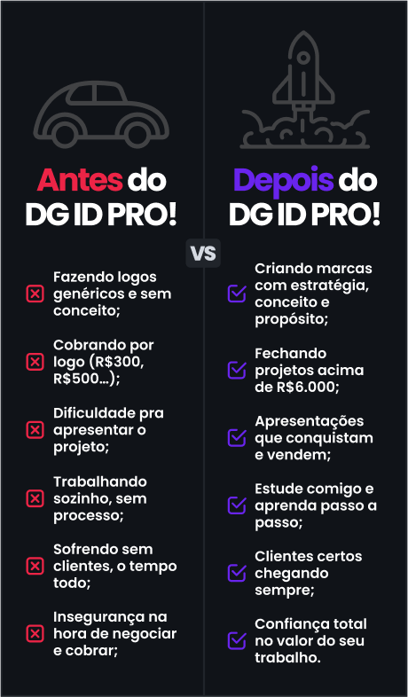 Você já sabe usar as ferramentas, mas sente que falta estratégia, criatividade e/ou conceito nos seus projetos. No DG ID PRO, vai dominar branding, posicionamento e valor de marca.